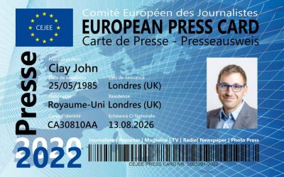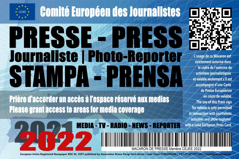 Delivrée aux membres du Comitè Européen des Journalistes la Carte de Presse Européenne permet aux professionnels des médias d’etre instantanément identifiable dans les differents pays de l’Union Européenne et dans le monde entier.