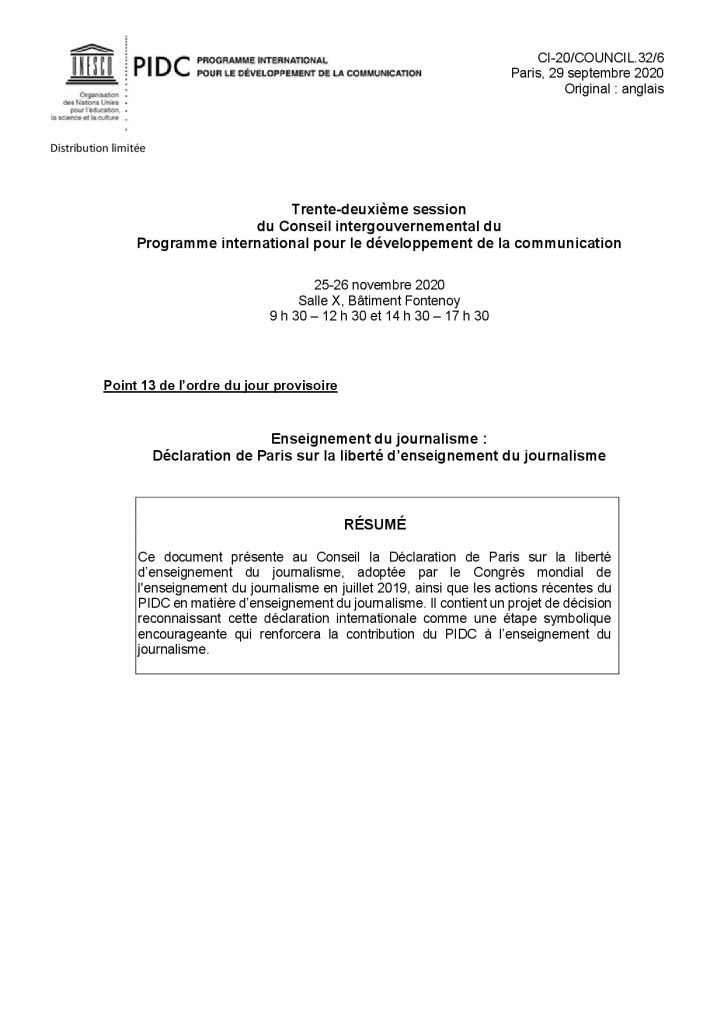 DÉCLARATION DE PARIS SUR LA LIBERTÉ D’ENSEIGNEMENT DU JOURNALISME